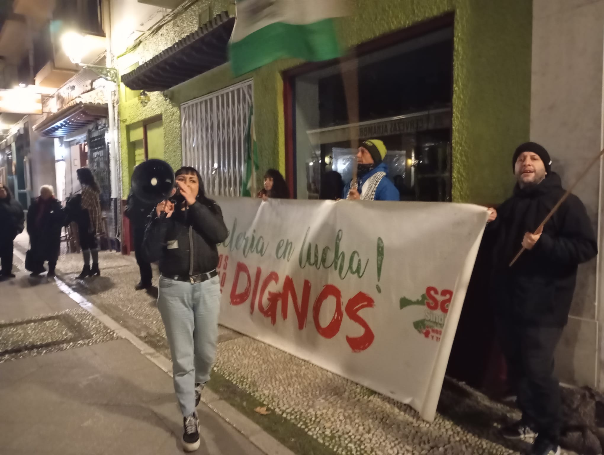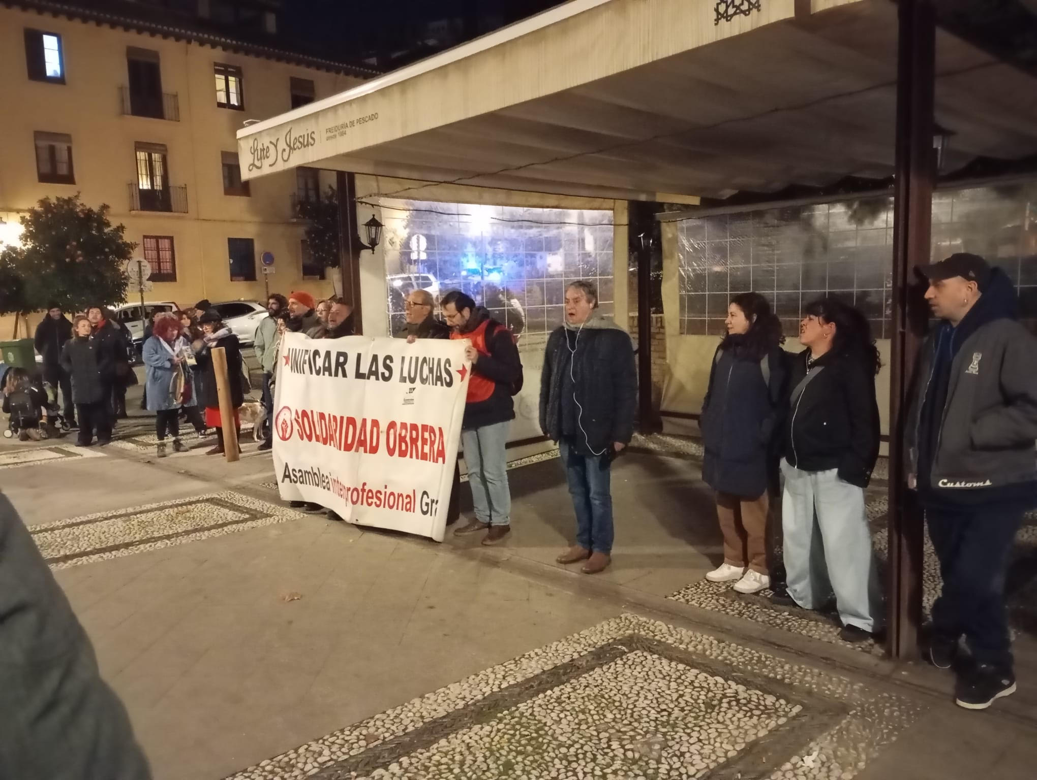 El Sindicato Andaluz de Trabajadores convocó a una concentración el 10 de enero en solidaridad con los trabajadores despedidos por Jargón en el establecimiento La Hojarasca en Granada. Dicha convocatoria contó con el apoyo de Asamblea Interprofesional de Granada , compañeros de Stop Desahucios 15M Granada y el vecindario del barrio del Realejo.